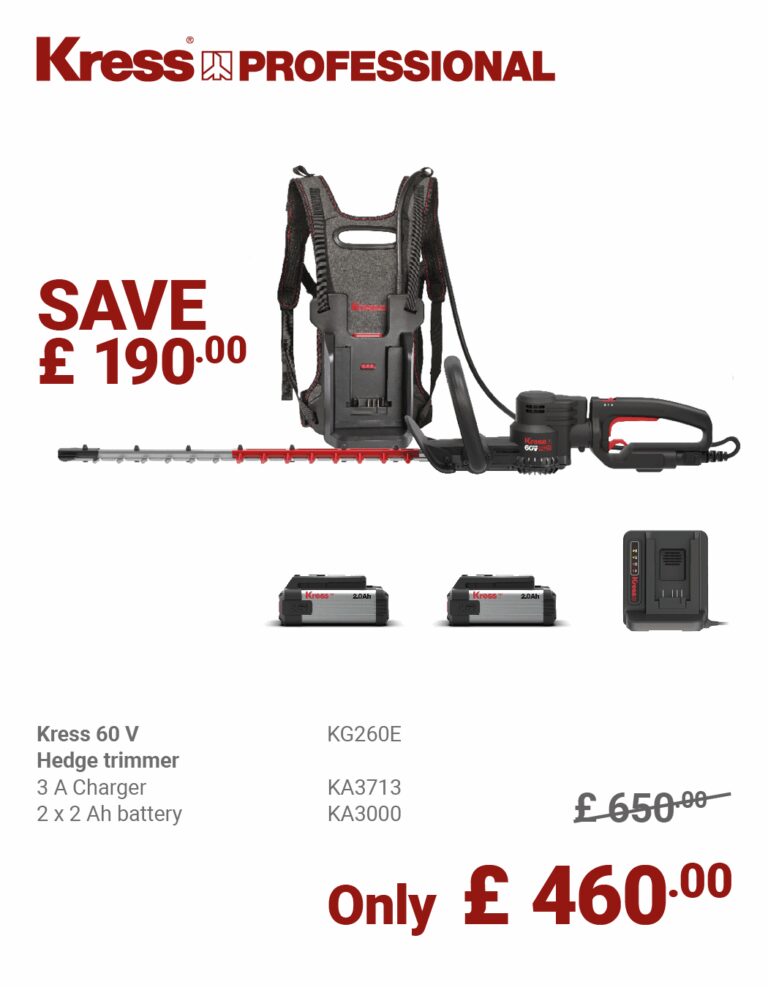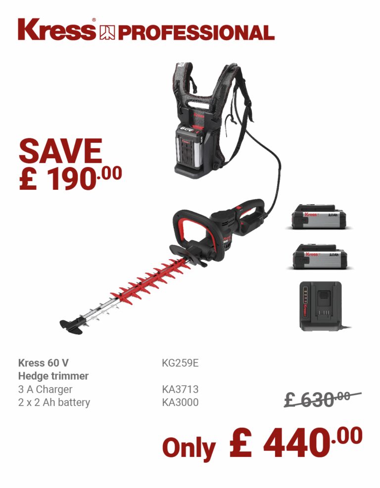 KRESS 60V 64CM Brushless Hedge Trimmer KG262 BUNDLE DEAL
