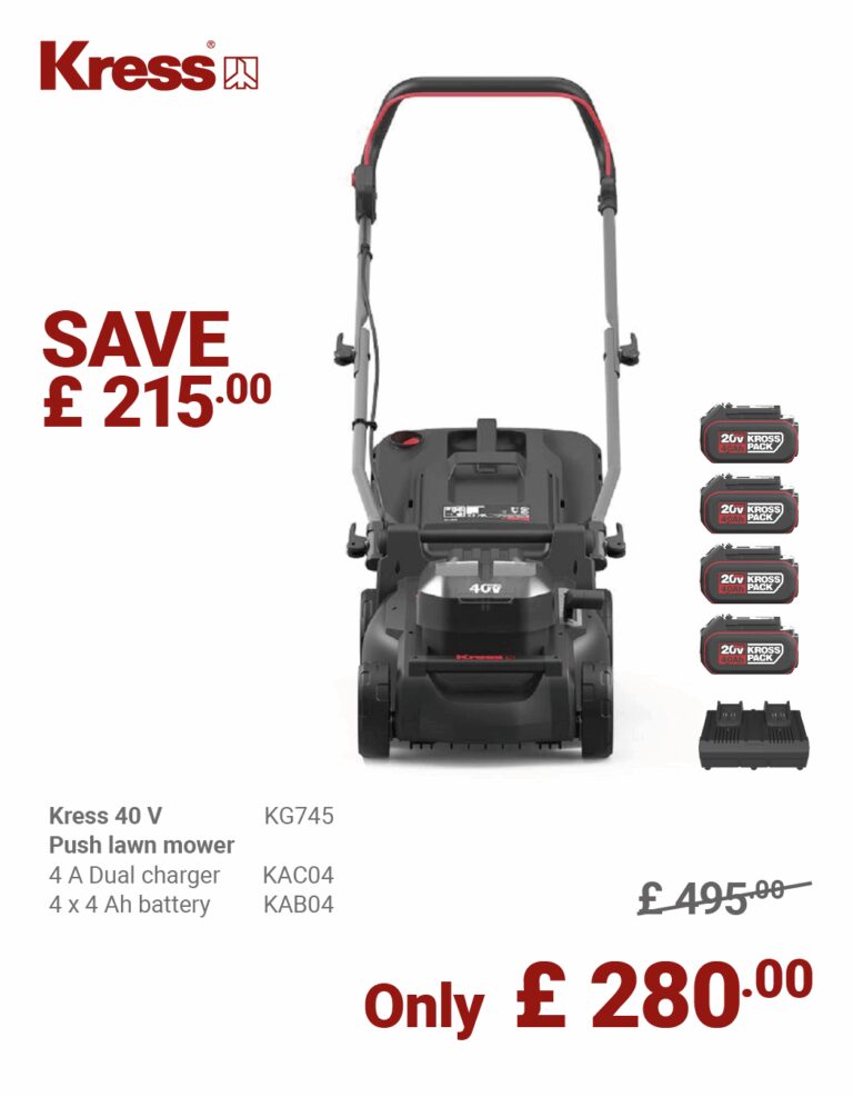 KRESS 40V 37CM cordless brushless push lawn mower KG745 BUNDLE DEAL