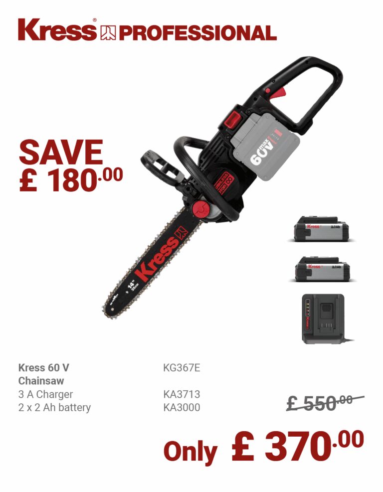 KRESS 60V 35CM Brushless Chainsaw KG367E BUNDLE DEAL
