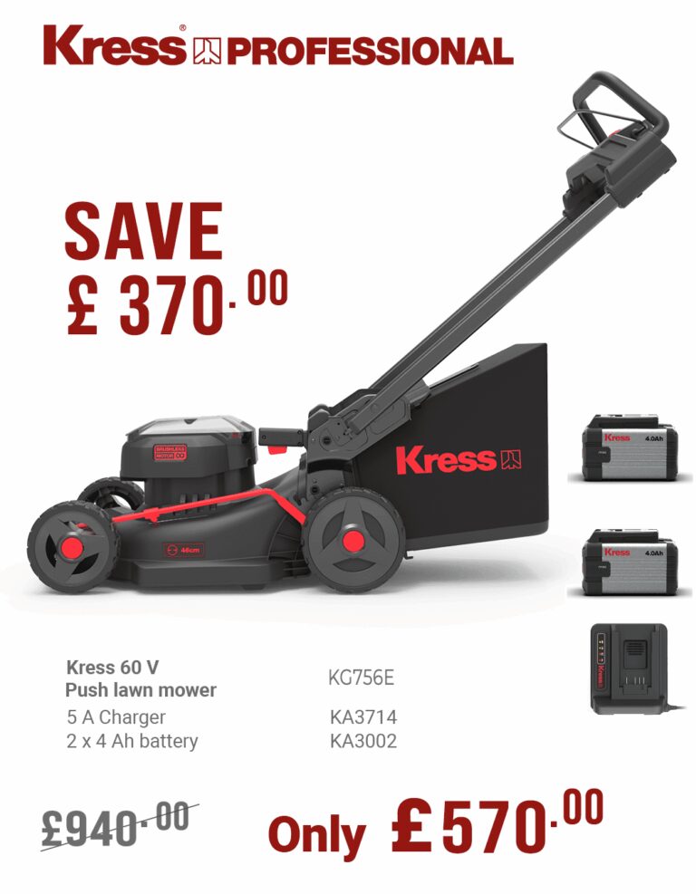 KRESS 60V 46CM Brushless Push lawn mower KG756E BUNDLE DEAL
