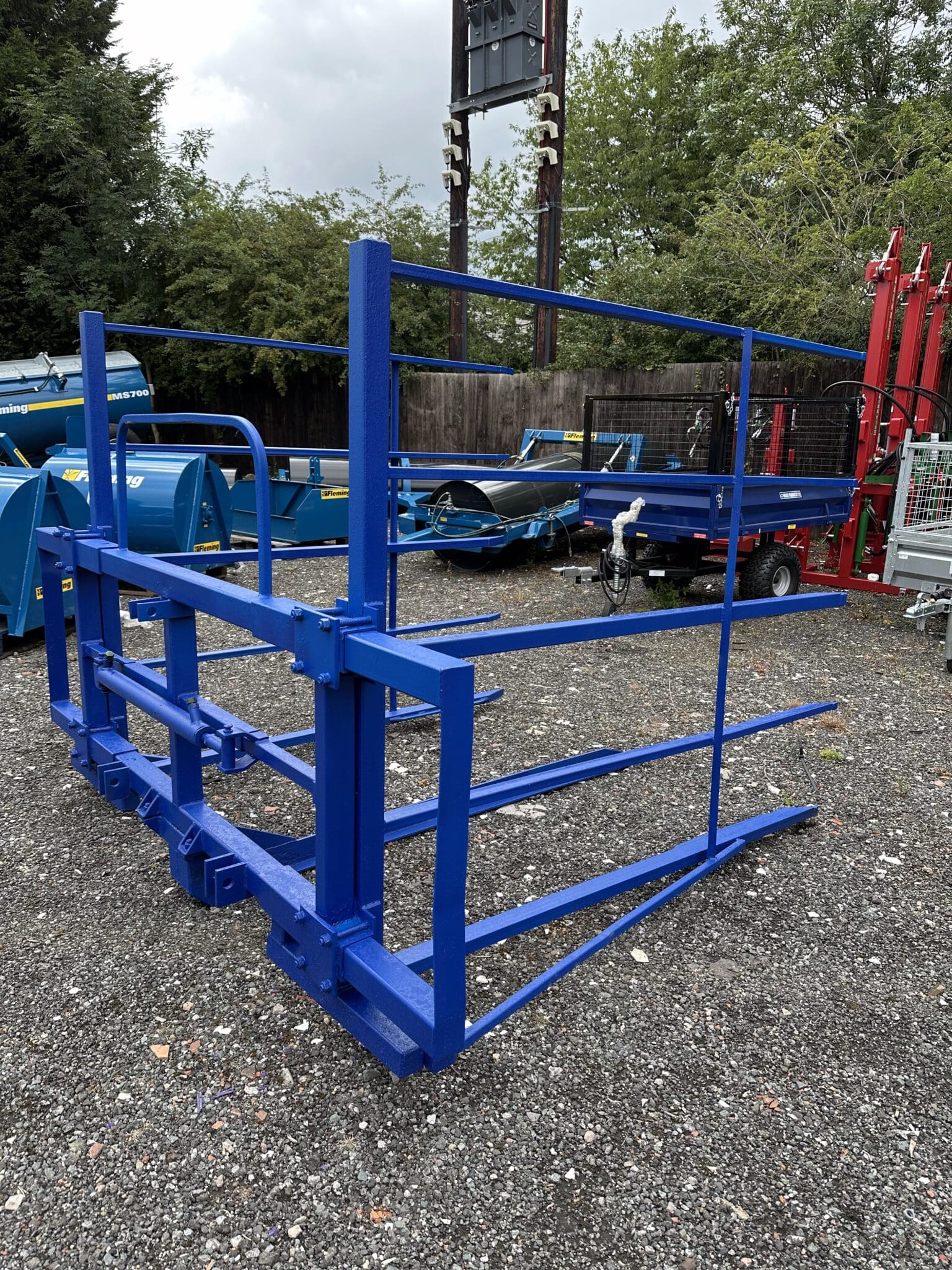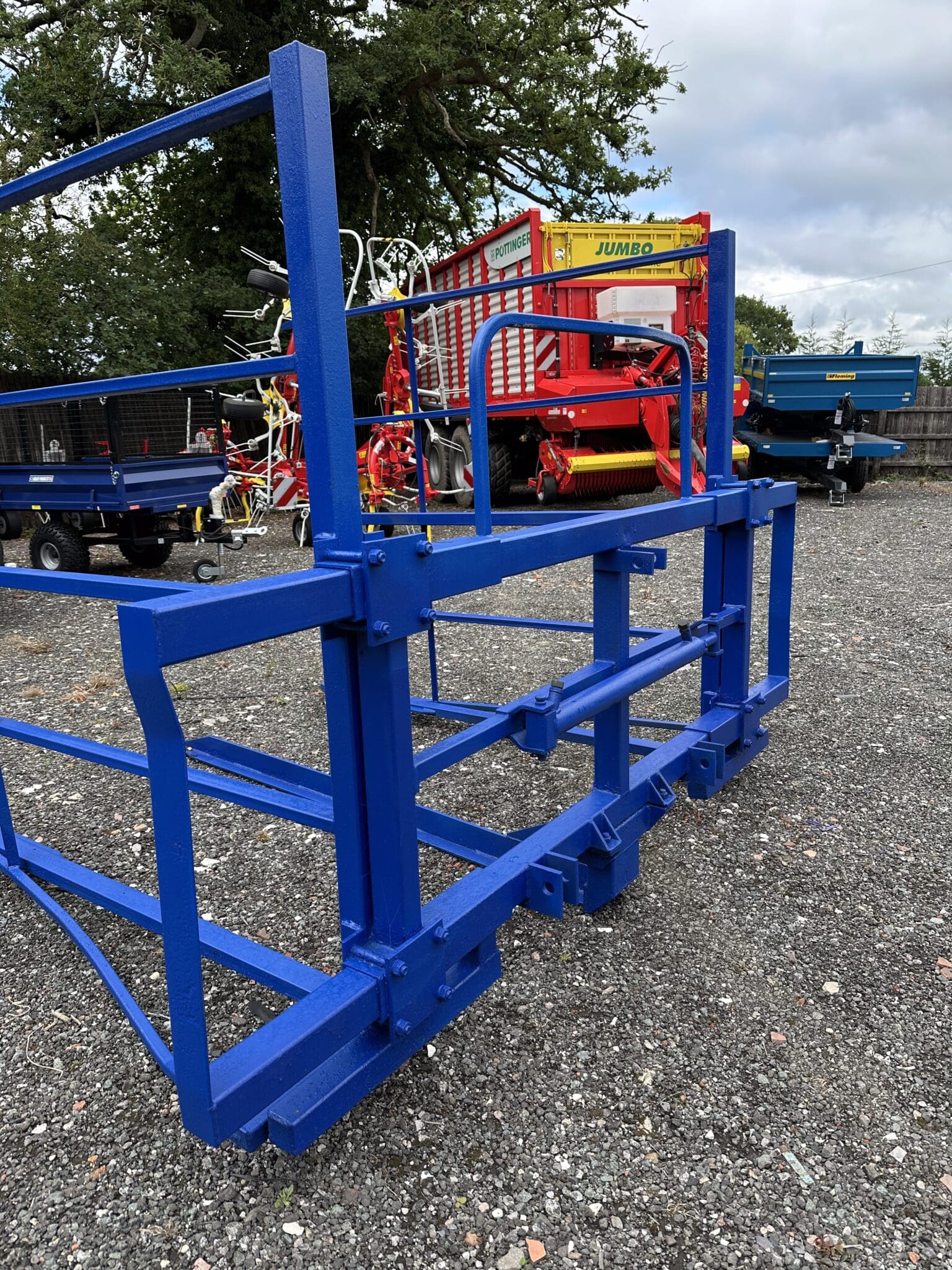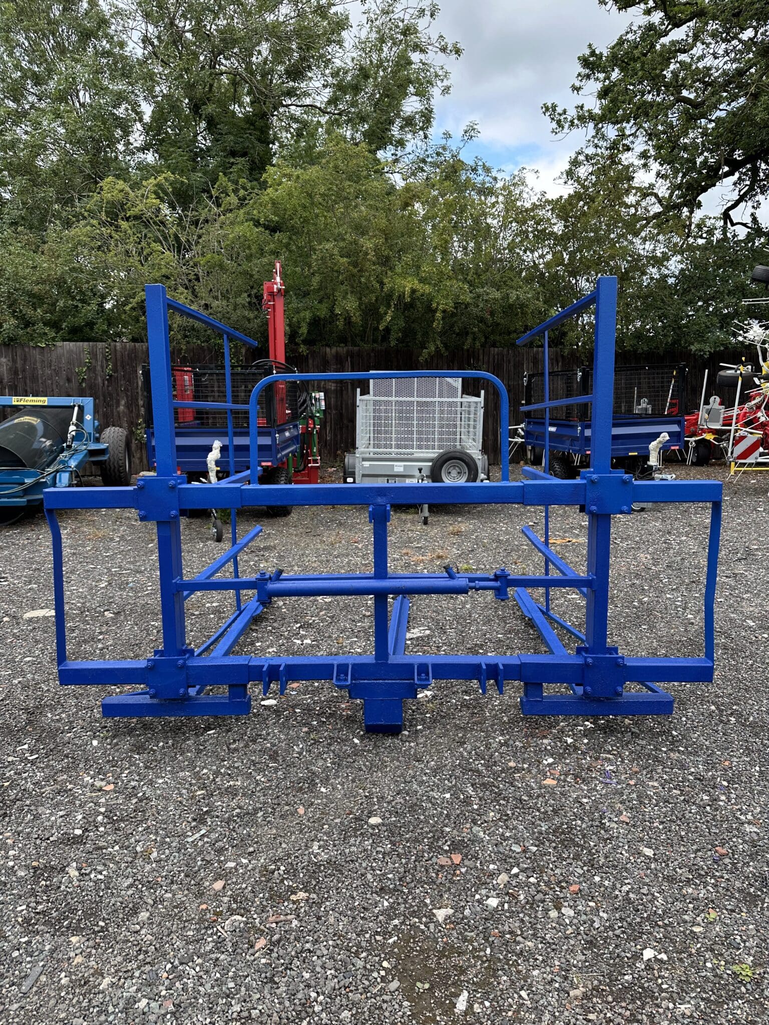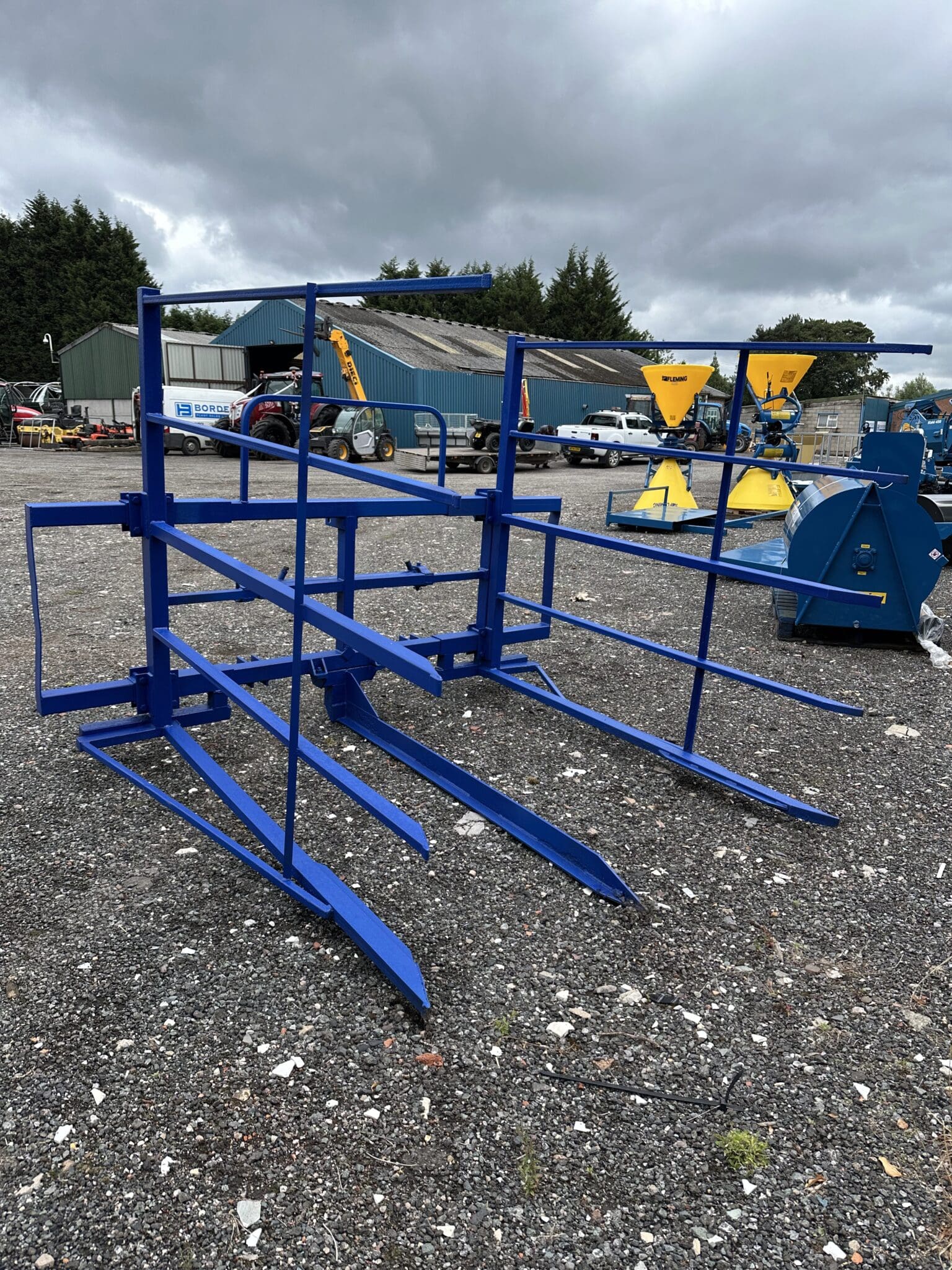 This hydraulic bale stacker mounts to a front loader or 3-point linkage and lifts up to 5 stacks of flat 8’s (48 bales) at once—making bale handling faster and easier.