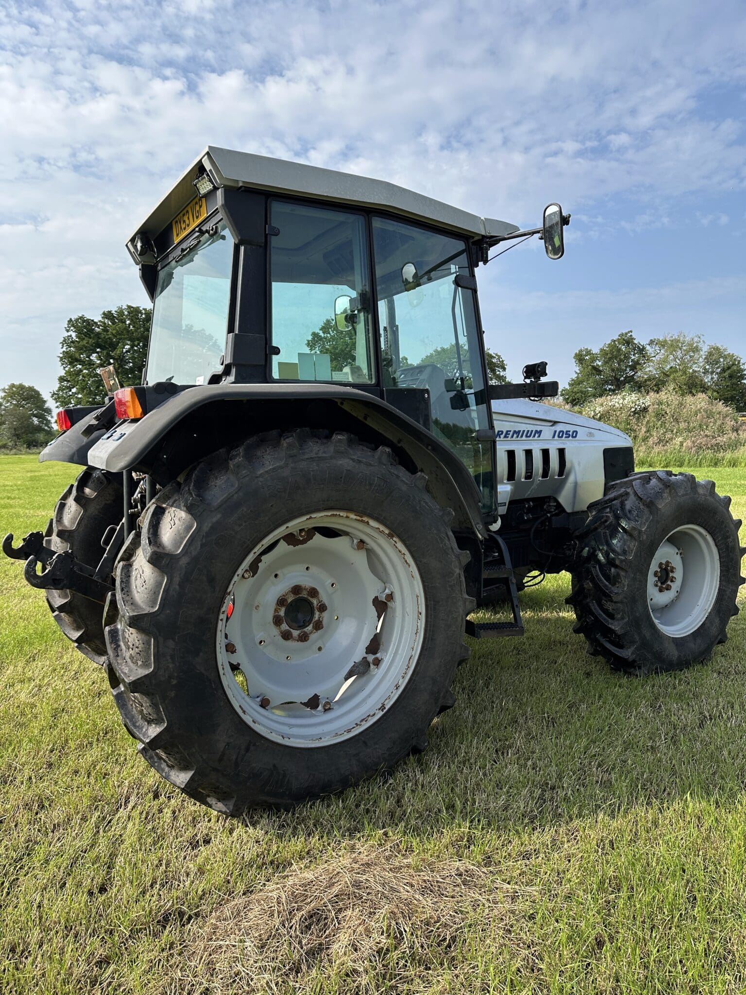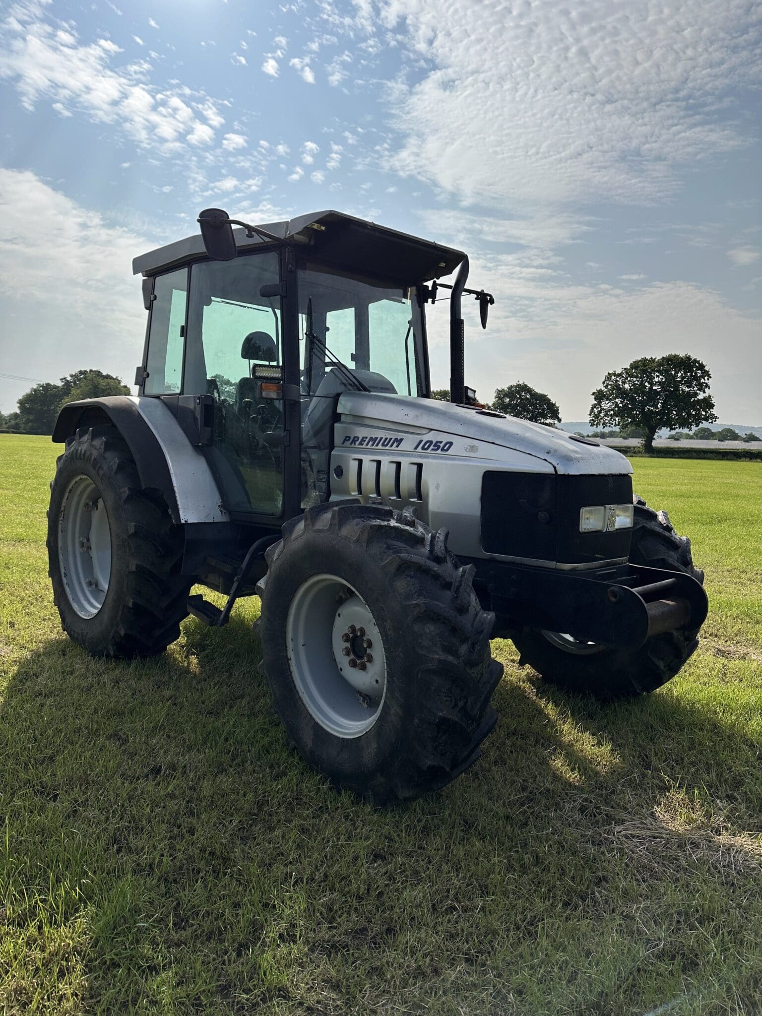 Introducing the Lamborghini Premium 1050 A, a robust 4WD tractor finished in a sleek silver. Built for outstanding performance, it boasts a powerful 101 horsepower engine, perfect for tackling a variety of tasks on the farm. This tractor has recently undergone a comprehensive gearbox overhaul, ensuring optimal reliability and functionality.