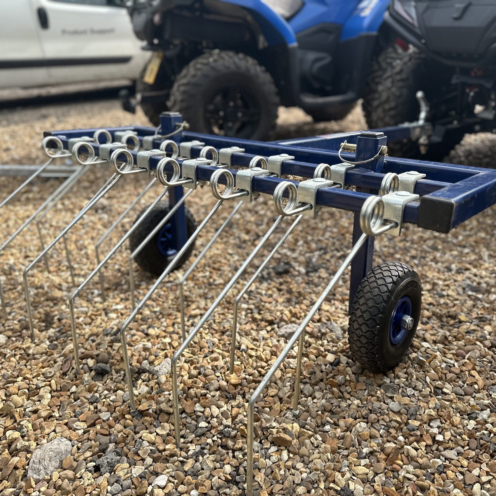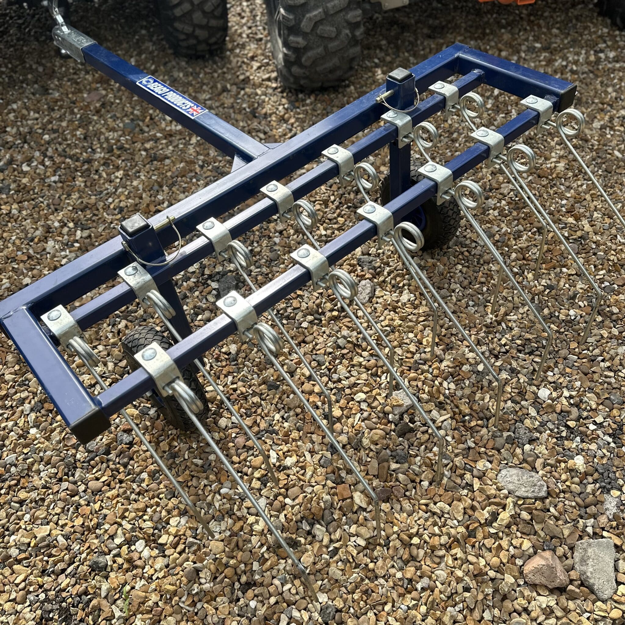 New 4Ft Wide Spring Tine Scarifier / Harrow. Perfect for Spreading Seed, Levelling Mole Hills and Dissipating Manure. Comes with Adjustable Height Wheels and Ball Hitch. Perfect for an Equestrian or Smallholder!