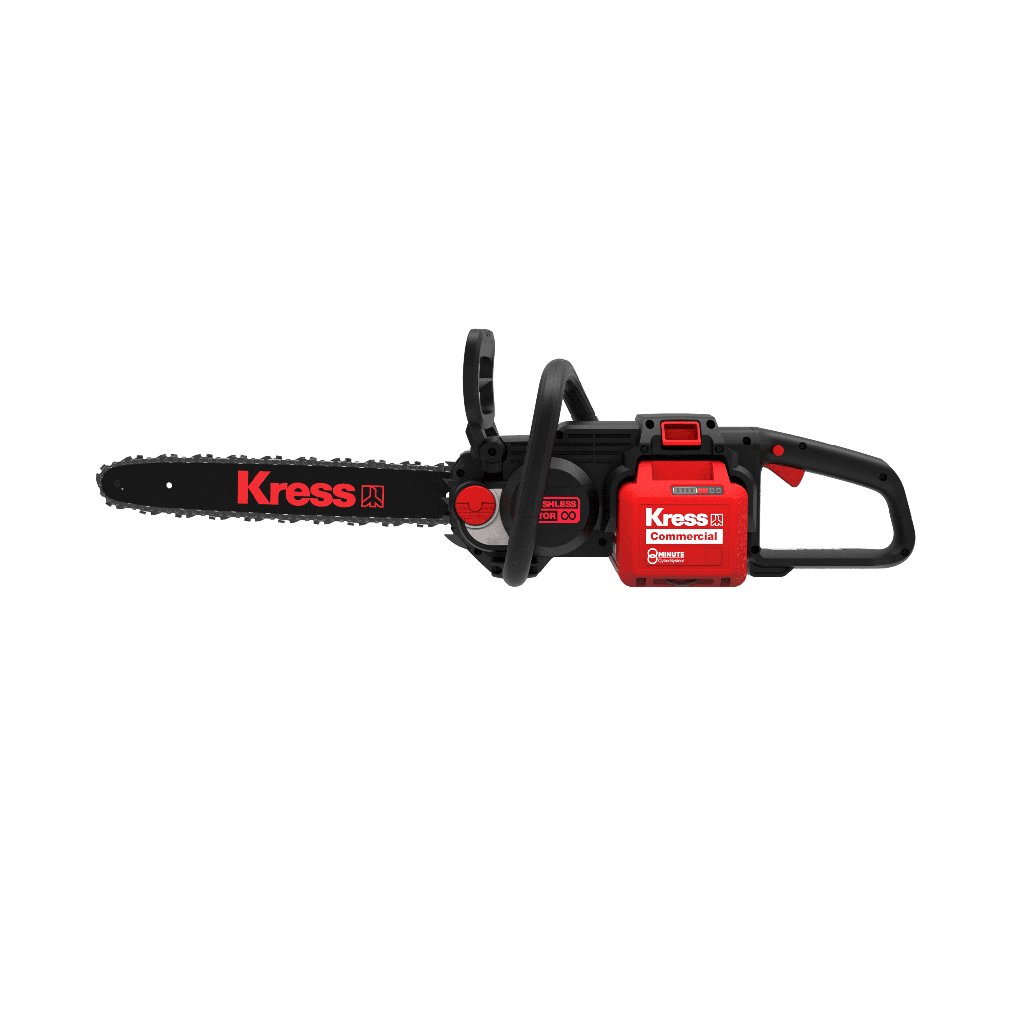 The Kress KC300.9 60V cordless chainsaw is the first truly cordless solution for professional landscapers. Built for power, durability, and convenience, it eliminates the starting hassles of petrol tools, even with intermittent use. Featuring a rapid chain speed and arborist-grade chain, it delivers smooth, fast, and efficient cutting. With the 8‑minute CyberSystem battery and charging technology, you’ll never run short on power during demanding tree care or storm recovery tasks. Its IPX4 waterproof design ensures reliable performance in tough conditions. Battery and charger sold separately — part of the Kress 60V interchangeable battery system.