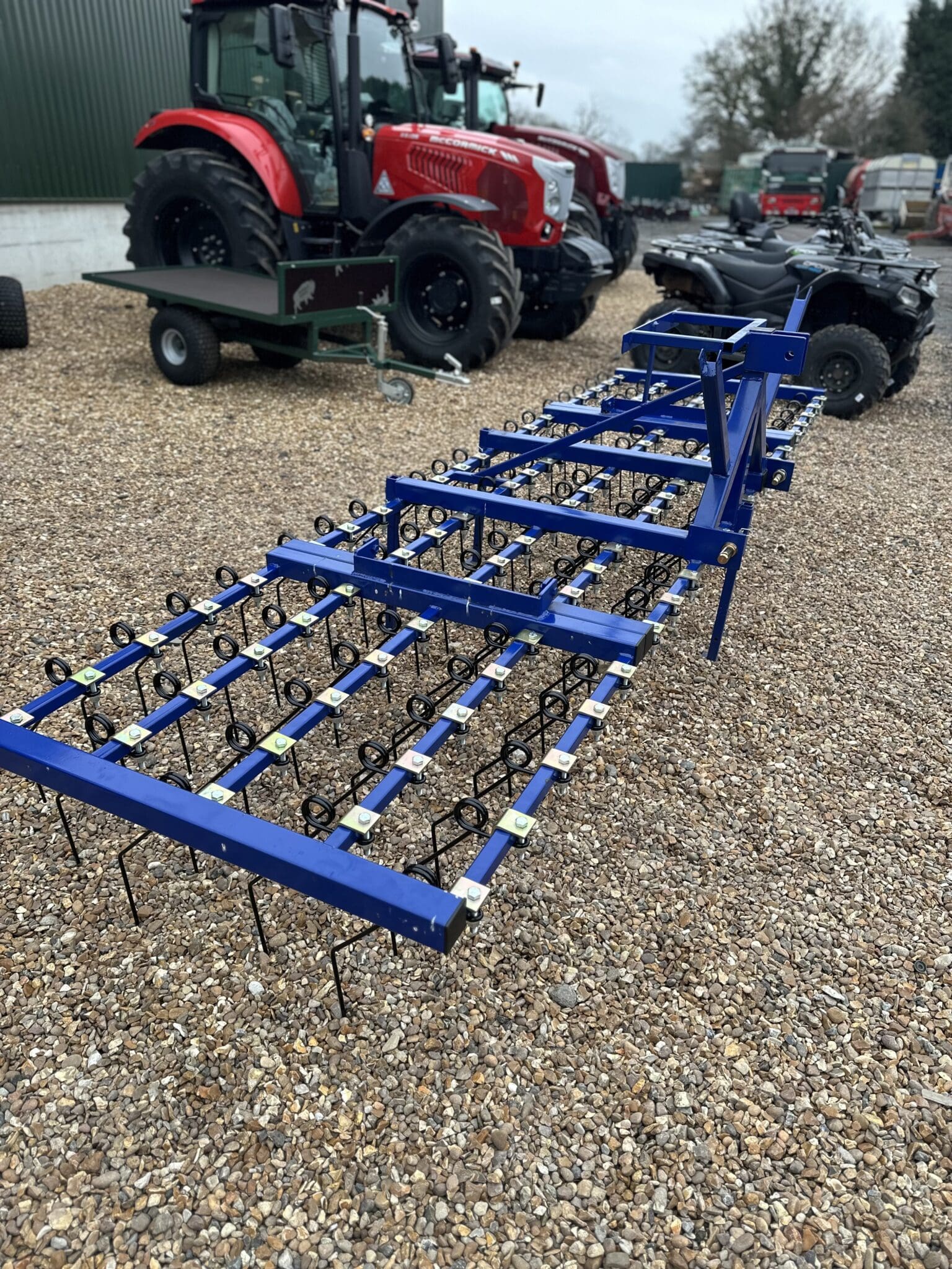 This 12ft Spring Tine Harrow is built for efficient pasture maintenance and field preparation. Featuring durable 8mm high-strength spring tines, it effectively removes dead grass, moss, surface thatch, and light weeds, promoting healthier regrowth and improved soil aeration.