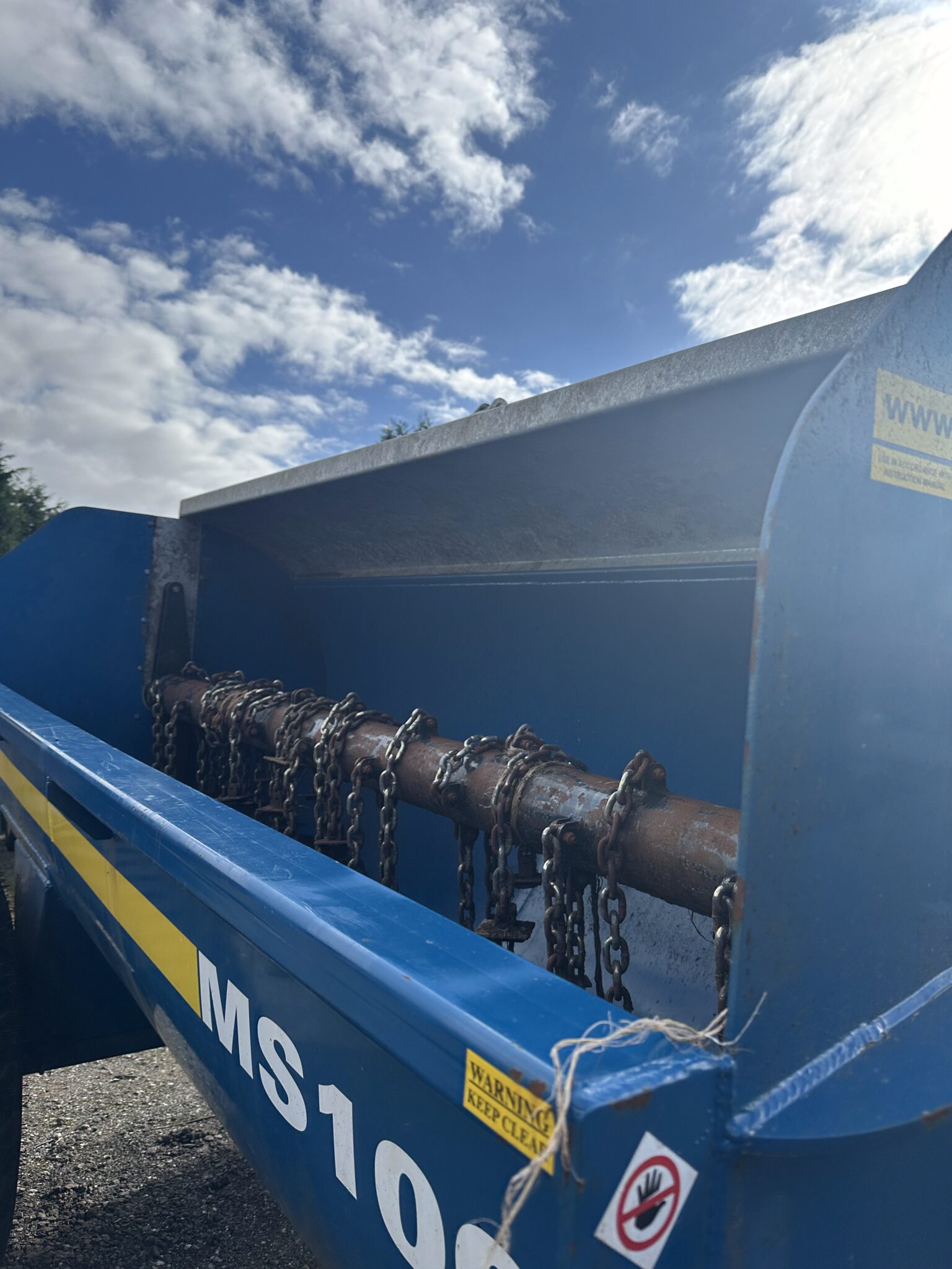 The Fleming Agri MS1000 muck spreader is built for high output and efficiency, making it ideal for large farms and holdings. Its simple chain and sprocket drive, mounted on heavy-duty bearings, reduces power demand and boosts fuel efficiency. With a 9.5 cubic yard capacity, it ensures even shredding and spreading every time.