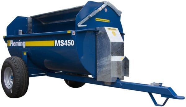 The MS450 muck spreader has a low horsepower requirement, ideal for small farms and holdings. A simple chain and sprocket drive line, mounted on heavy duty bearings gears down the spreader to reduce the power demand on the tractor and increase fuel efficiency.